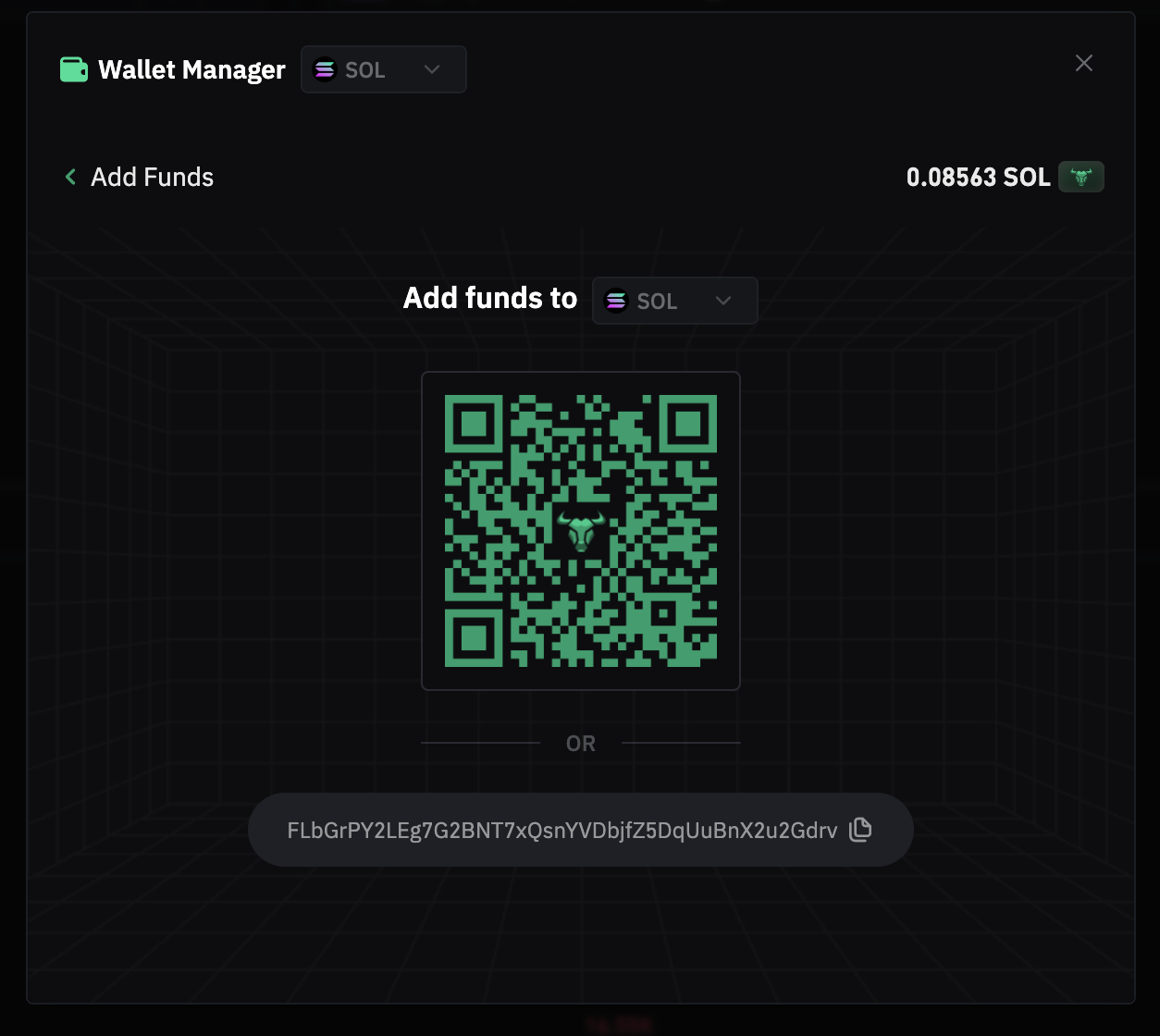 Deposit some SOL to start trading. Make sure you have enough balance for the trading pairs you plan to use.