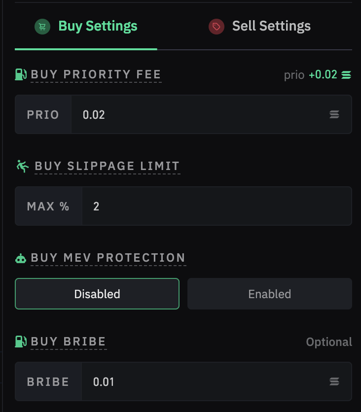 📸 Screenshot: Configuring Trading Strategy on BullX